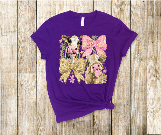 Adorable Cows with Bows-Cottagecore Graphic, DTF Transfer Prints Ready To Press