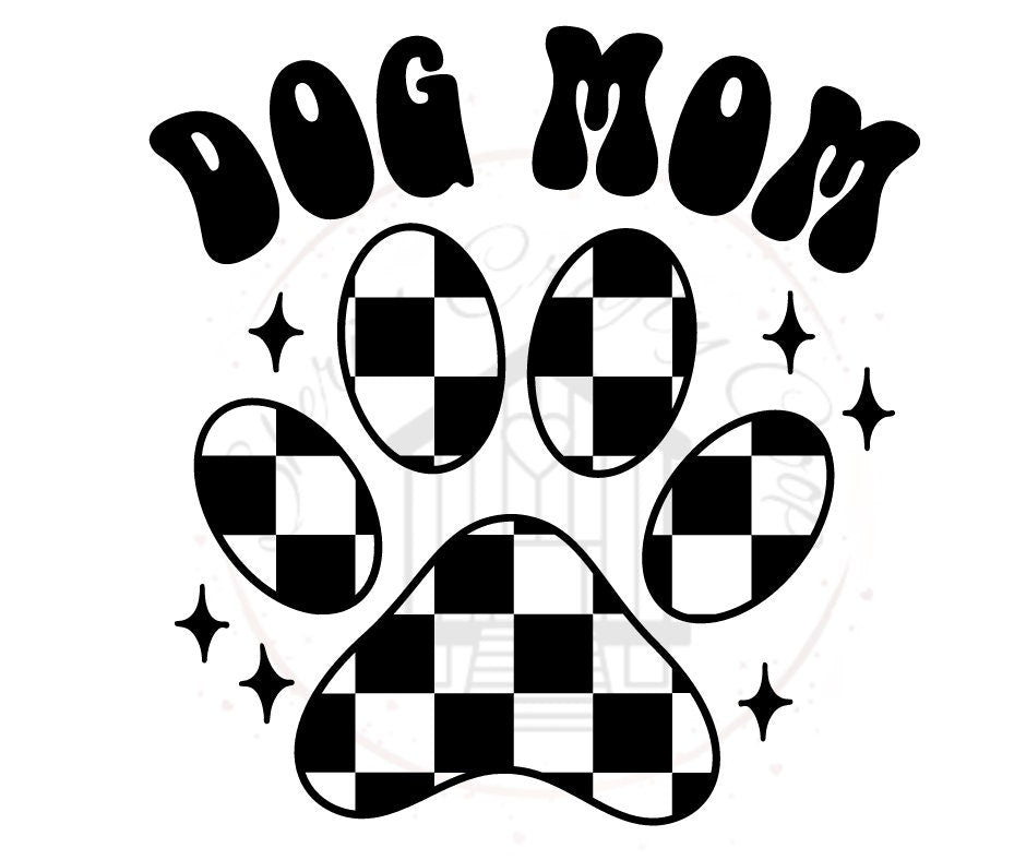 Dog Mom Checkered Paw Print DTF Transfer Print Ready To Press