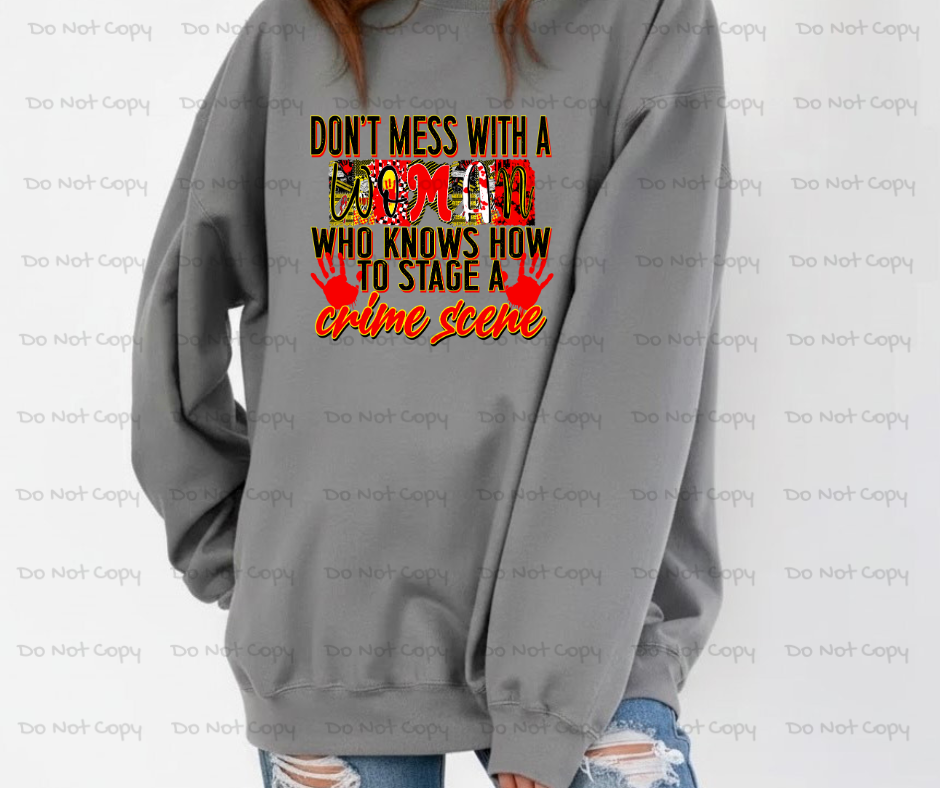 Don't Mess With A Mom Who Knows How To Stage A Crime Scene- DTF Transfer Prints- Ready To Press