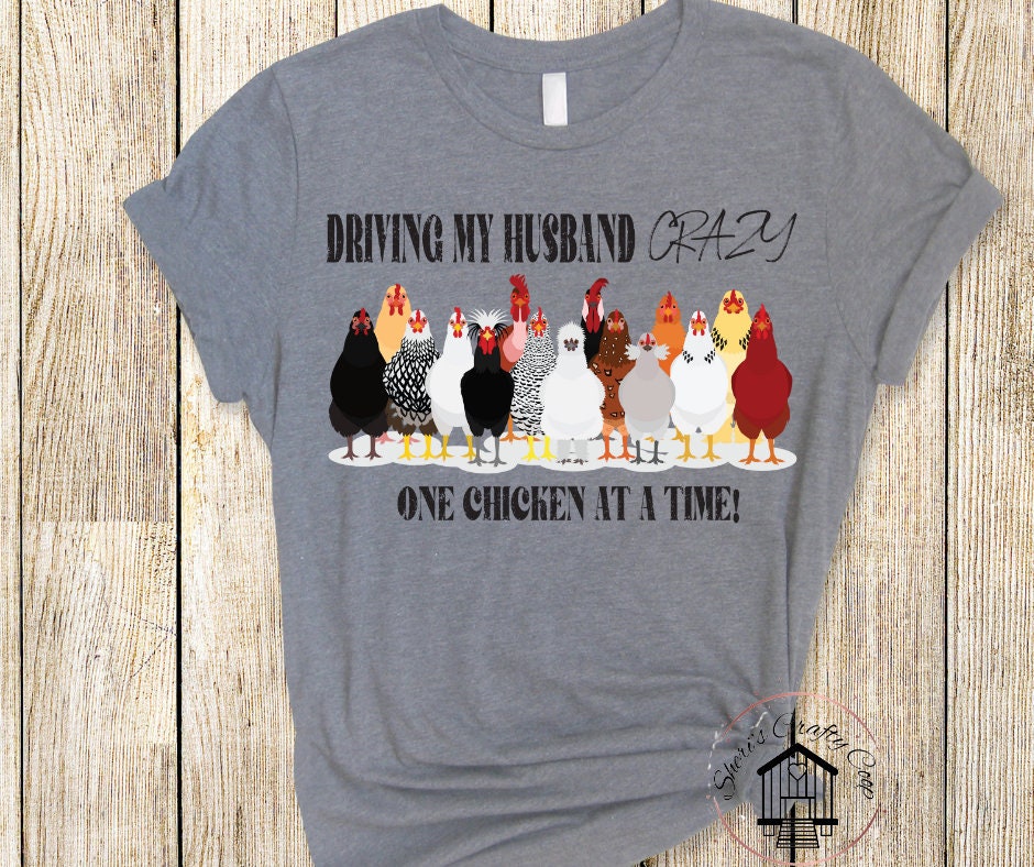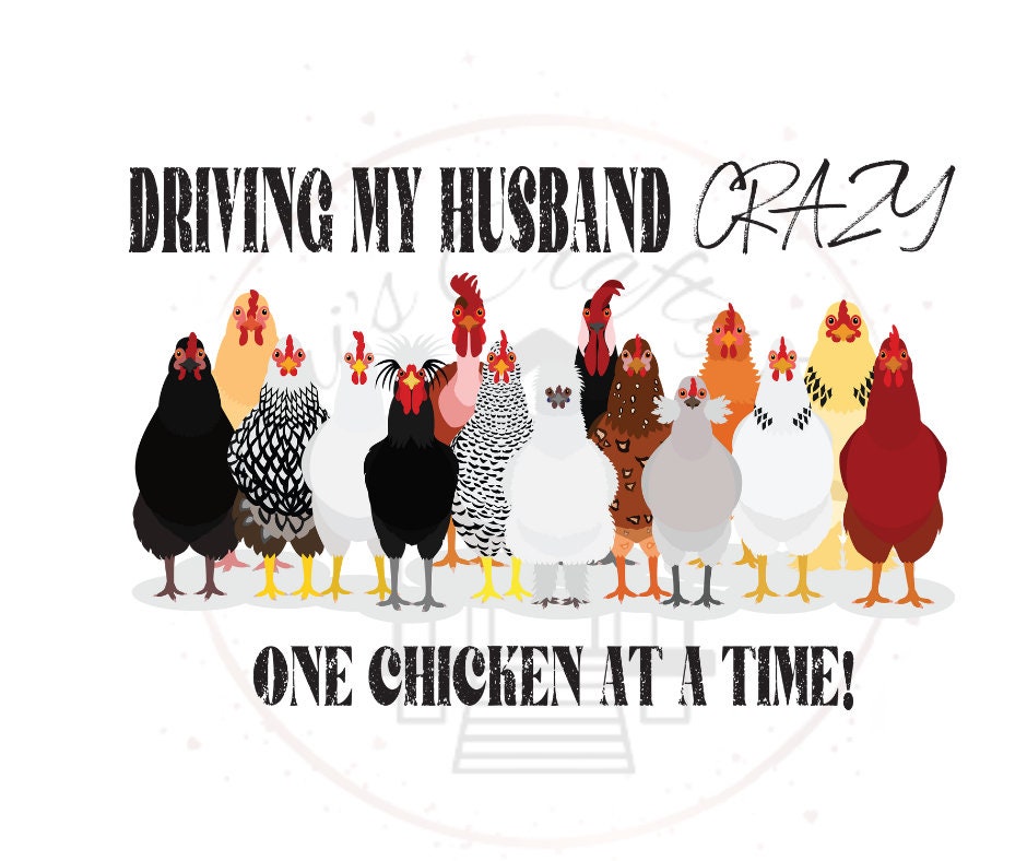 Driving My Husband Crazy One Chicken At A Time DTF Transfer Print(Only) Ready To Press