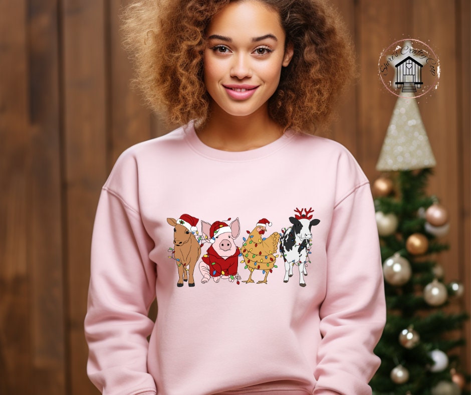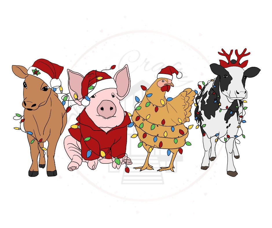 Farm Animals With Christmas Lights DTF Transfer Prints(only) Ready To Press