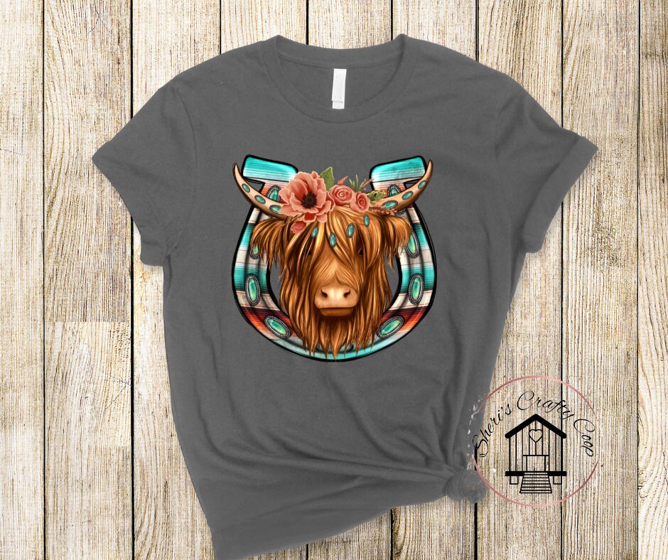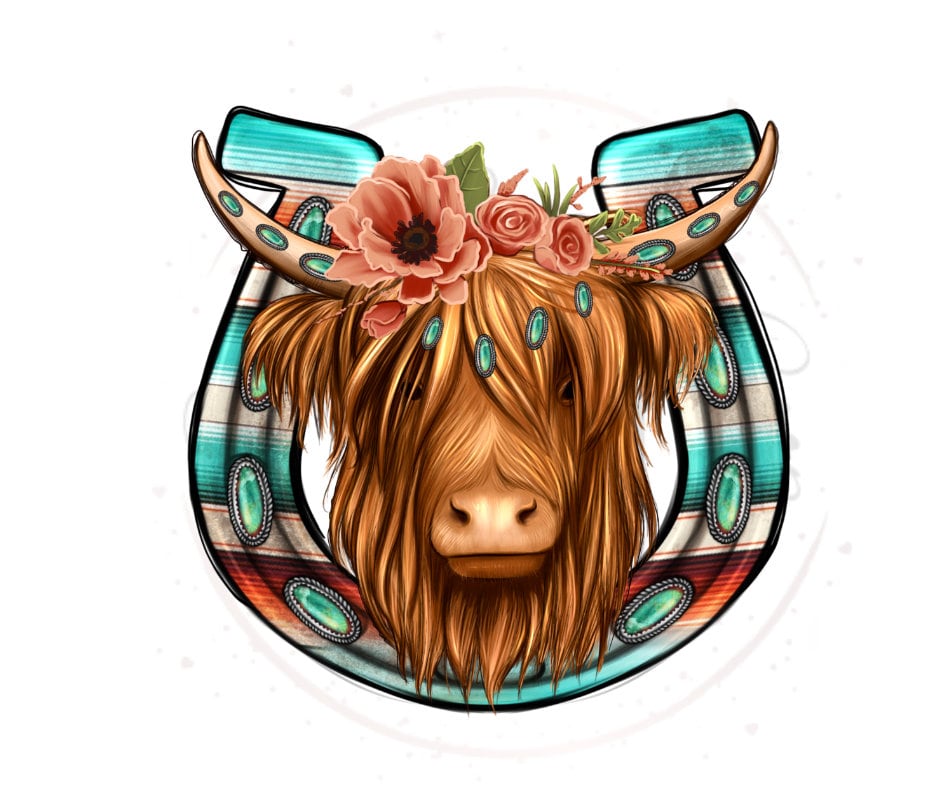 Floral Highland Cow Horseshoe DTF Transfer Print(Only) Ready To Press