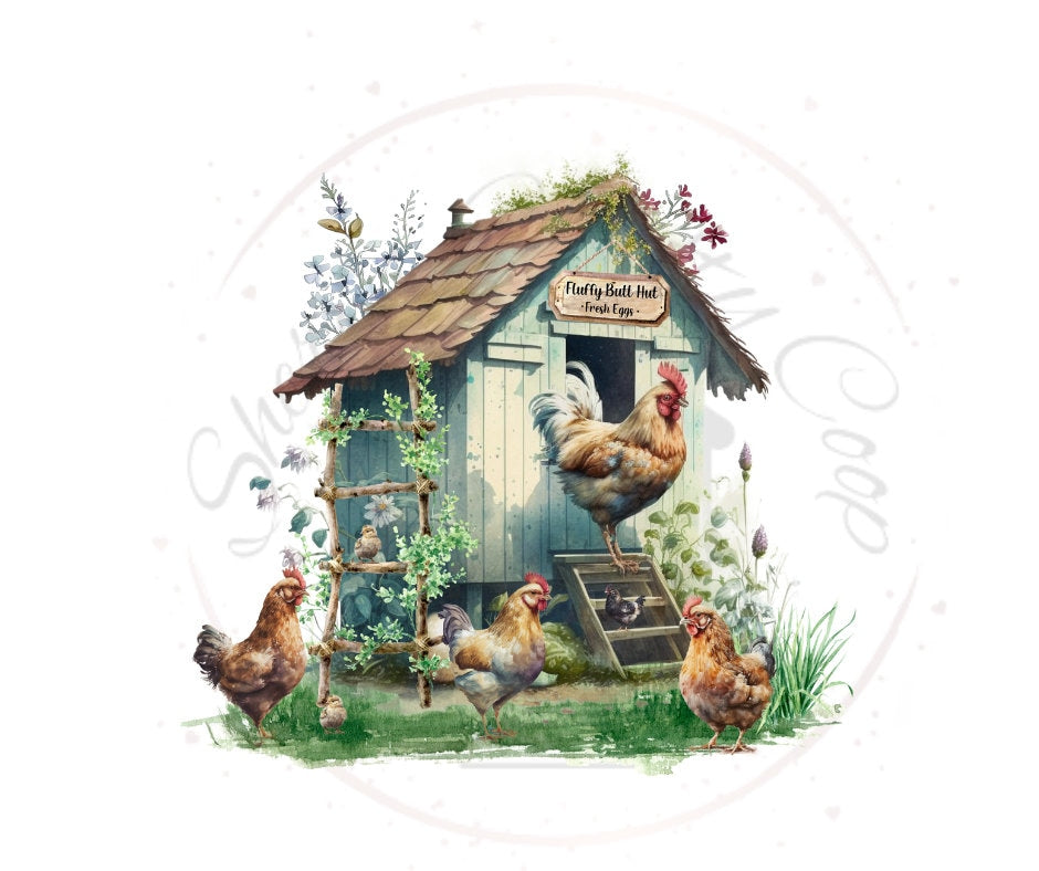 Fluffy Butt Hut Chicken Coop DTF Transfer Print(Only) Ready To Press