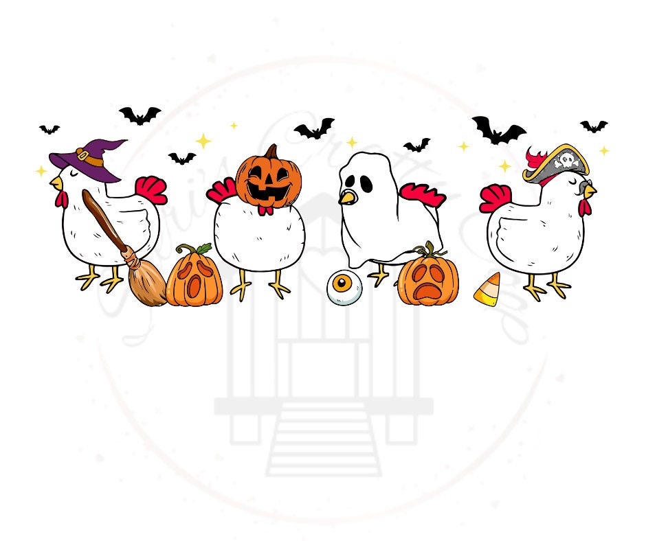 Halloween Chickens Spooky Season DTF Transfer Print(Only) Ready To Press