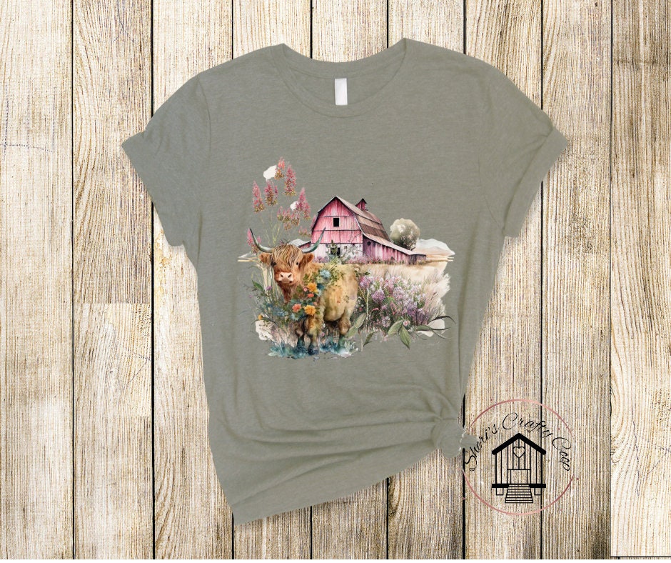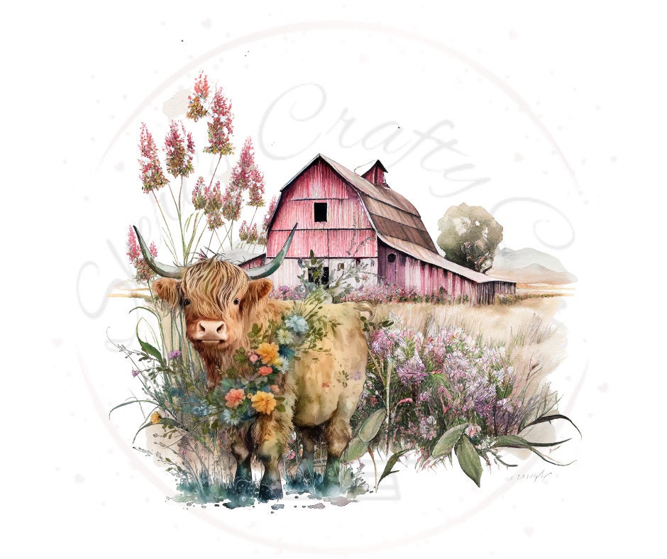 Highland Cow Barn Image DTF Transfer Print(Only) Ready To Prss