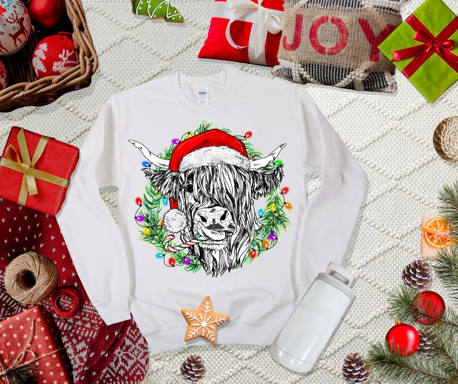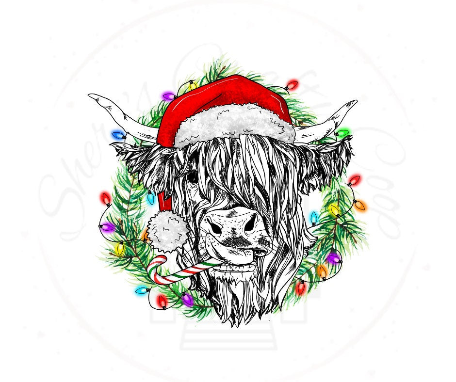 Highland Cow Christmas Wreath DTF Transfer Print(Only) Ready To Press