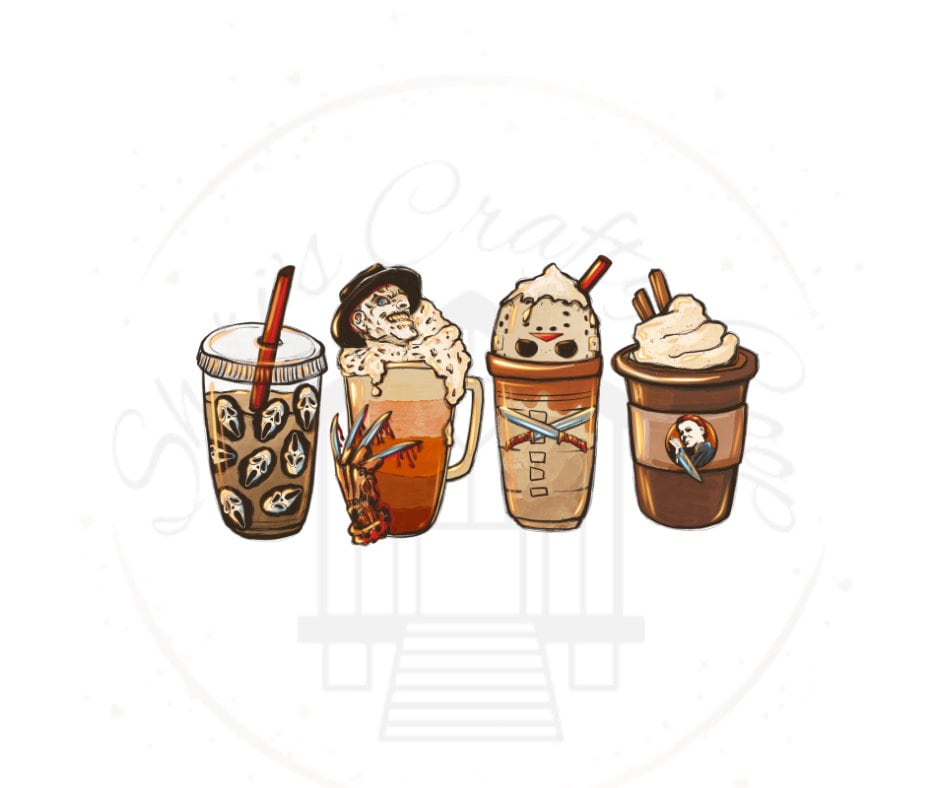 Horror Characters Coffee Cups DTF Transfer Print(Only) Ready To Press