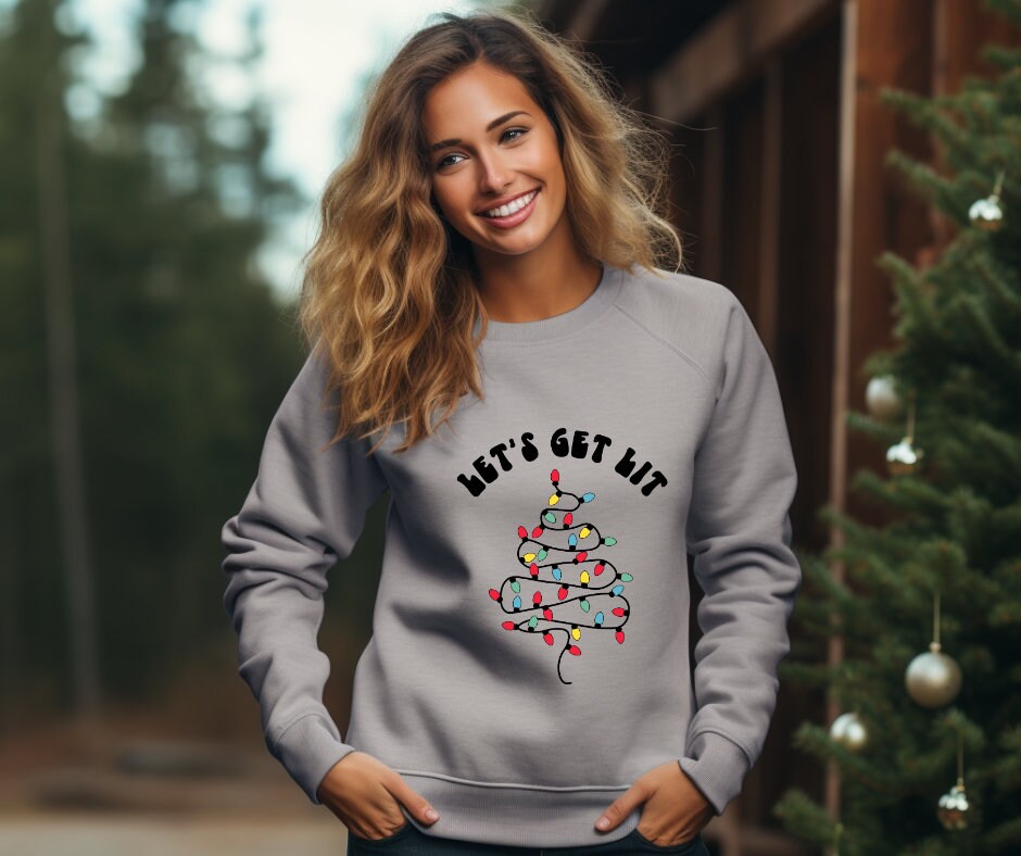 Lets Get Lit Christmas Lights DTF Transfer Print(Only) Ready To Press