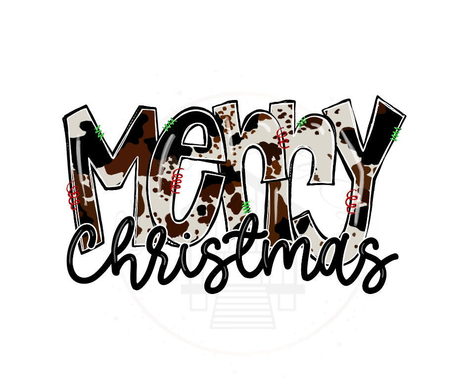 Merry Christmas Festive Cow Print DTF Transfer Print(only) Ready To Press