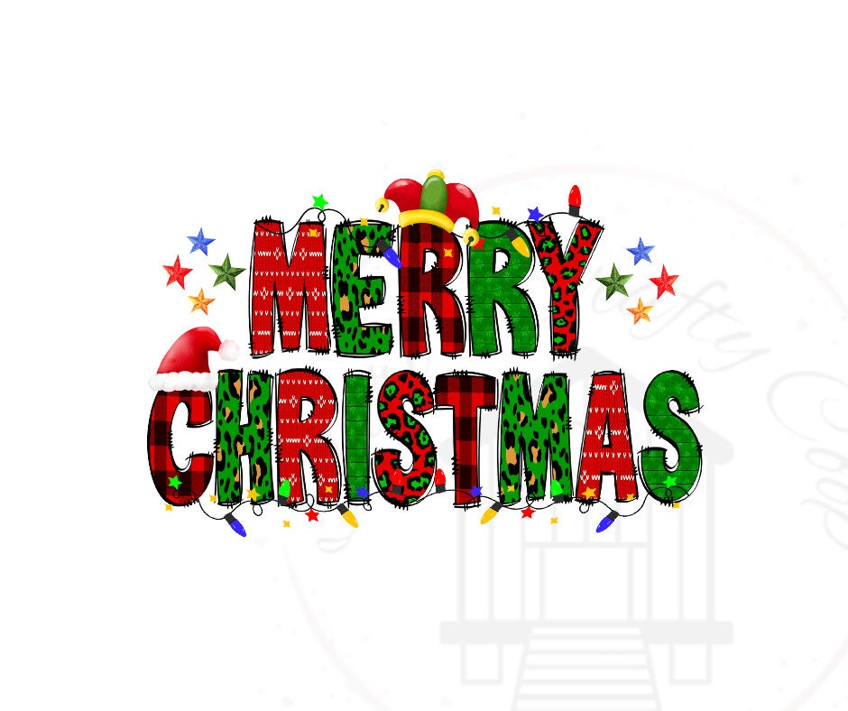 Merry Christmas Multi-Colored Plaid Christmas Letters DTF Transfer Print(only) Ready To Press