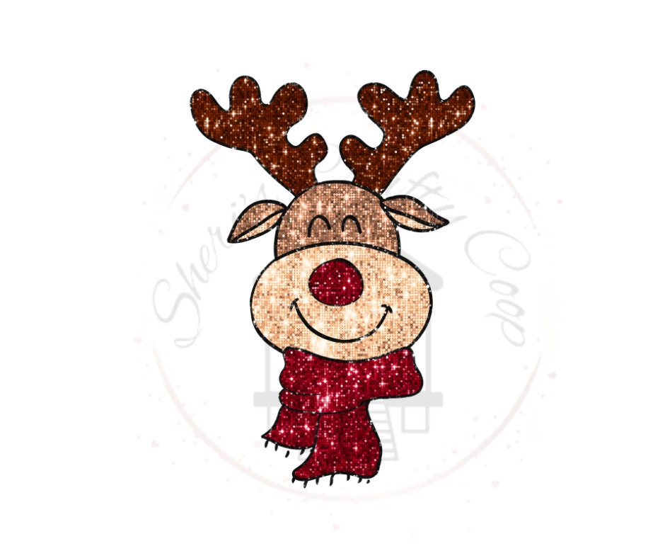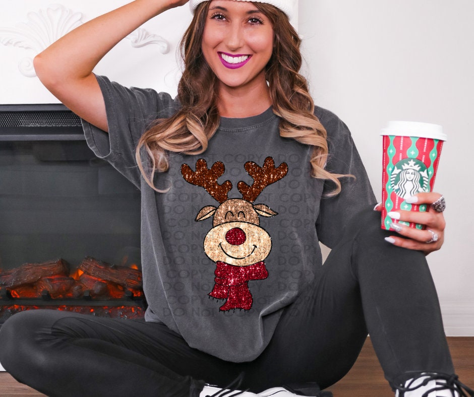Red Nosed Reindeer Faux Sequin DTF Transfer Print(Only) Ready To Press