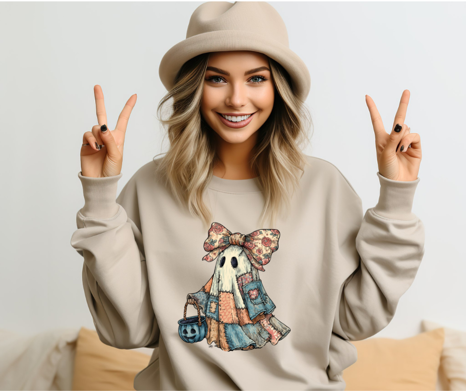 Retro Halloween Blue Denim Ghost- DTF Transer Print- Ready To Press