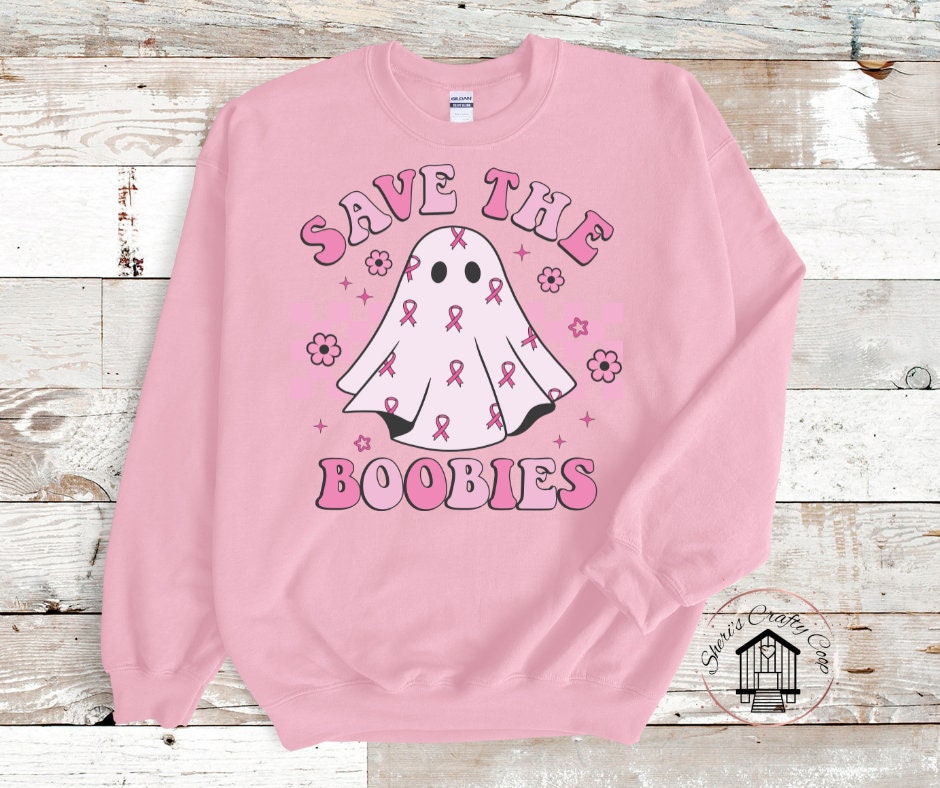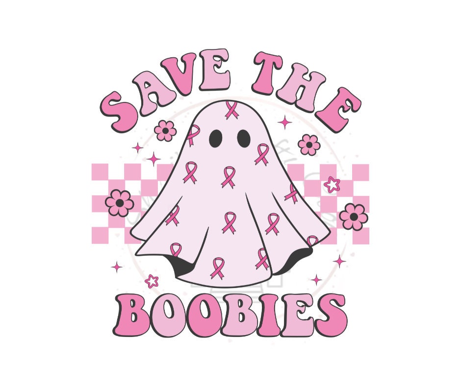 Save The Boobies Ghost Breast Cancer Awareness DTF Transfer Print(Only) Ready To Presa