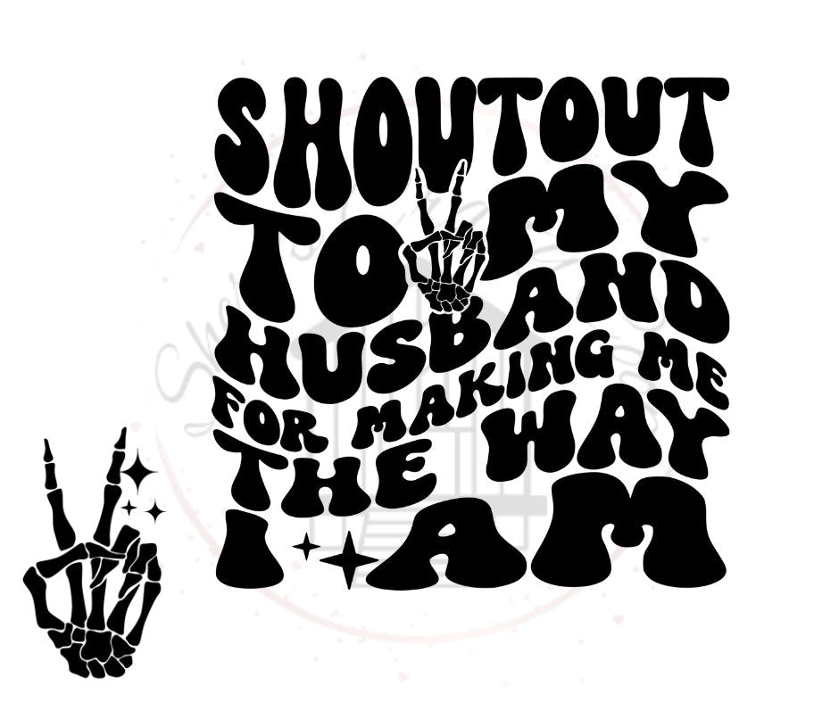 Shoutout To My Husband For Making Me The Way I Am(Includes Front Pocket) DTF Transfer Print Ready To Press