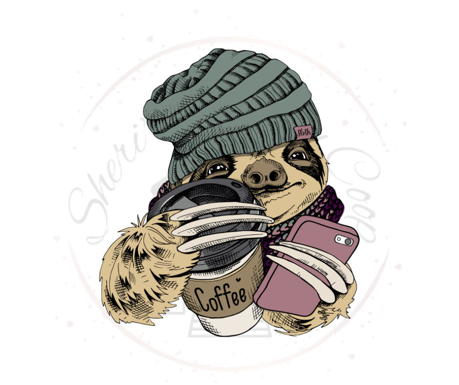 Slothie Before Coffee Sloth DTF Transfer Print(Only) Ready To Press
