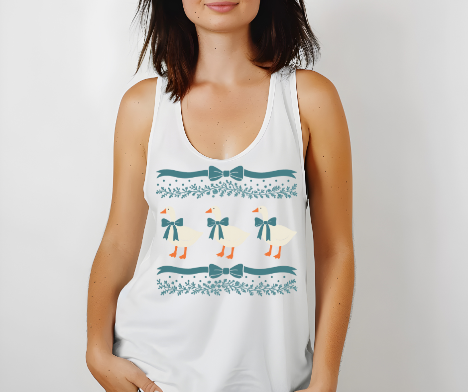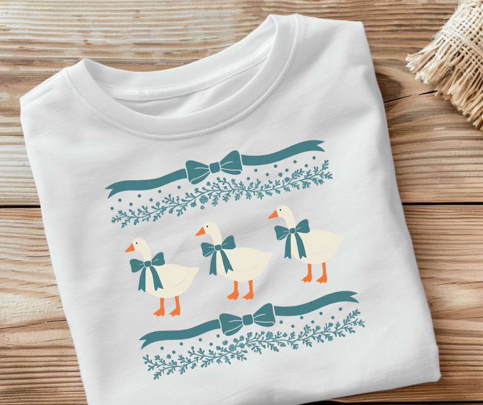 Vintage Geese With Blue Ribbon Old Bakewareish- DTF Transfer Print- Ready To Press