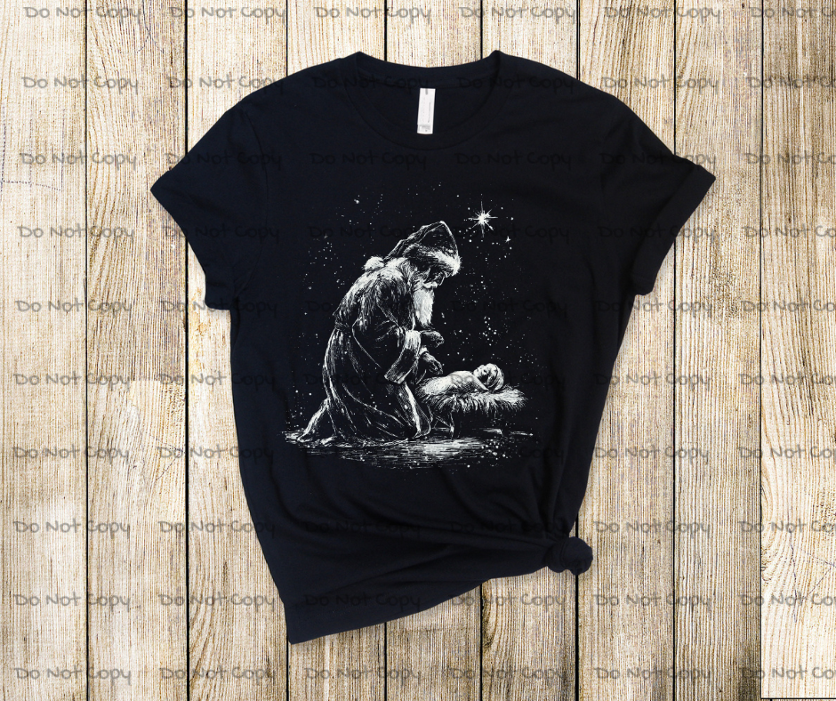 Vintage Santa & Baby Jesus Star Wish • Christmas DTF Transfer • Ready to Press